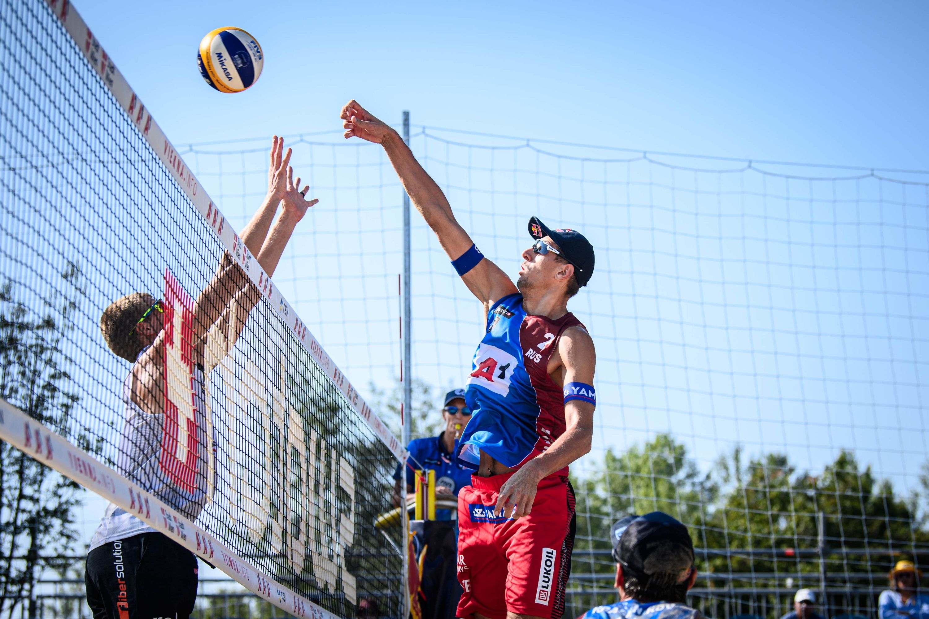 The EuroBeachVolley 2021 in Vienna is a truly unique event, especially in the pandemic times, as players from all around Europe are loudly cheered by the fans in the stands, what is extremely appreciated by all competitors. Back in 2016, Russian super duo Viacheslav Krasilnikov and Oleg Stoyanovskiy earned their first medal from the world championships (bronze), exactly in the same location - in Vienna. "It's amazing to come back and play in Vienna, because it's one of our favourite tournaments, as audience support everybody and atmosphere is so cool. Especially we are happy to come back here after winning silver in Tokyo and it's unbelievable," said Stoyanovskiy after winning their first game against Estonians Nõlvak/Tiisaar after nail-biting second set which ended in extra time (28-26!).